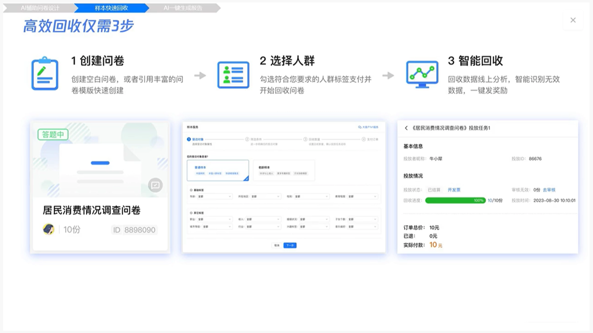 - 高效样本回收:依托强大样本库实现快速数据收集。